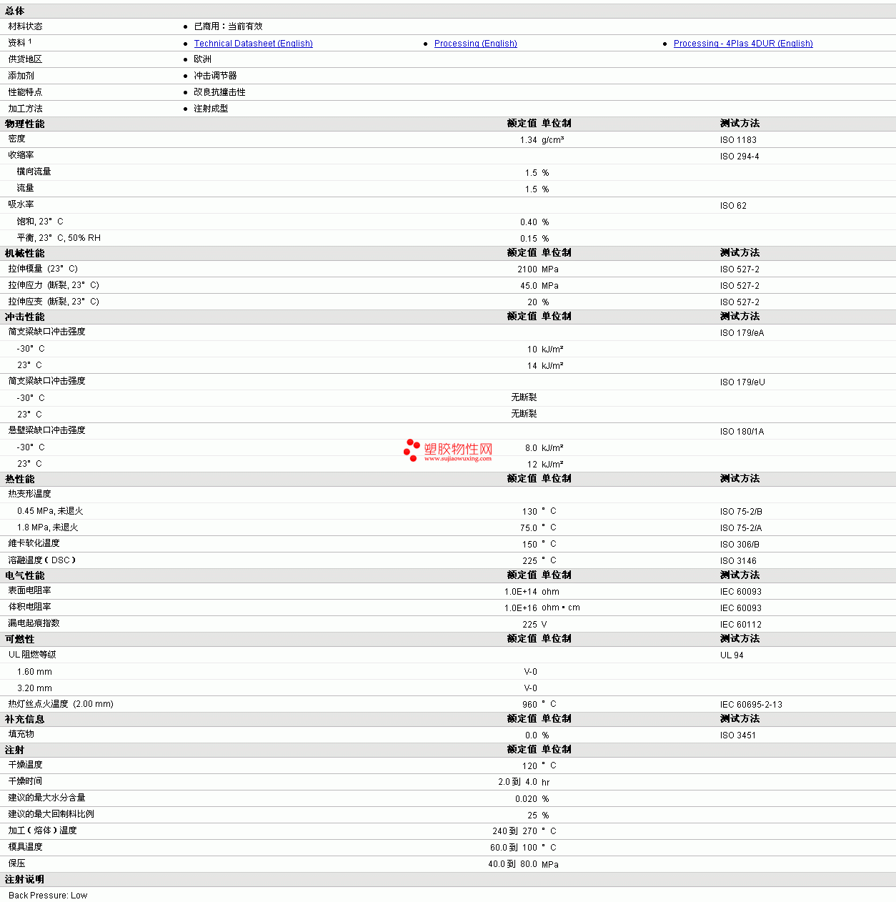 4DUR PC/PBT 9KF23100 I物性表详情见附件