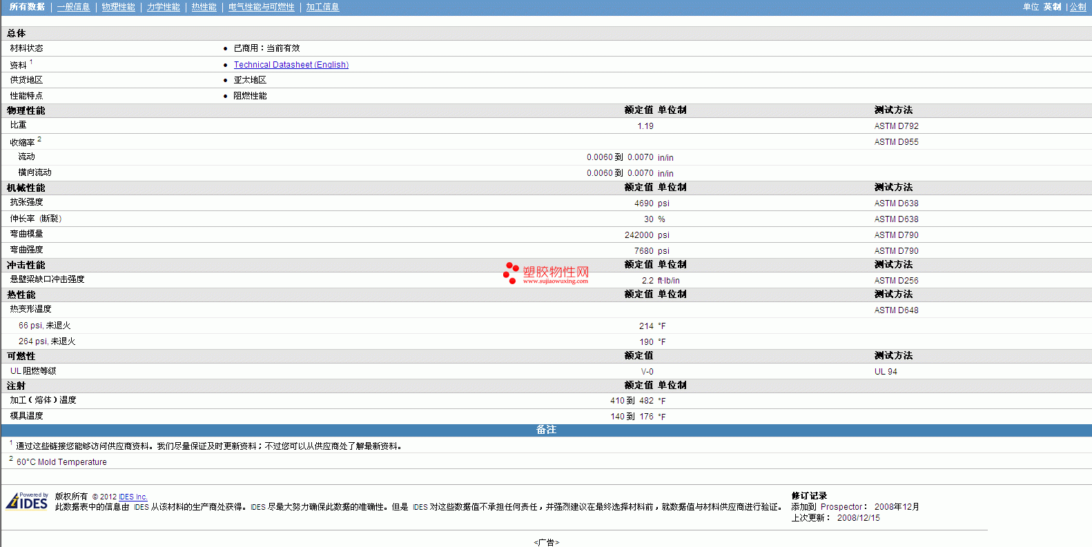 TEKALOY PBT/ABS T80FR物性表 更多资料见图