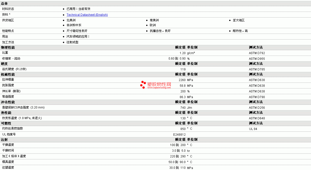 ABEL PC/PBT PET 536011物性表 详情见附件