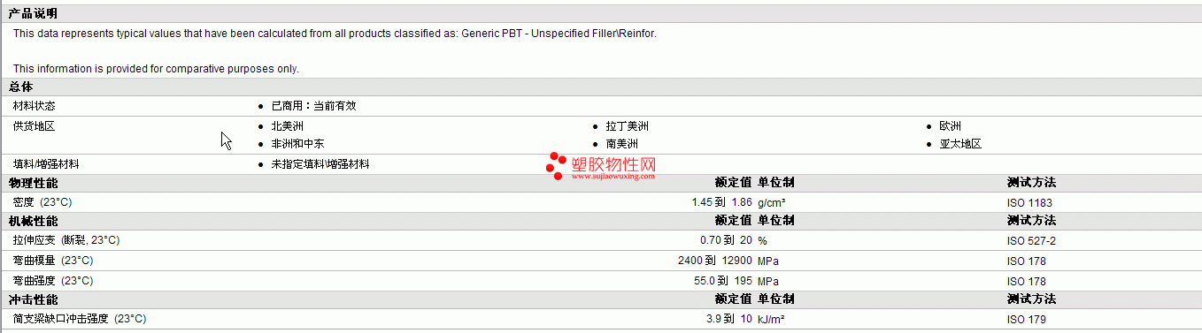 Generic PBT - Unspecified FillerReinfor 塑胶原料更多详情,PC专家,可来电咨询赵先生:13424755533 QQ:27660005