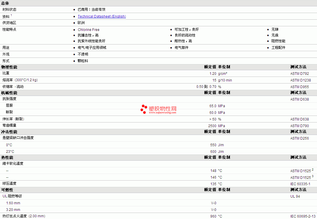 ESTACARB PC 1560 V0 HF 物性表详情见附件