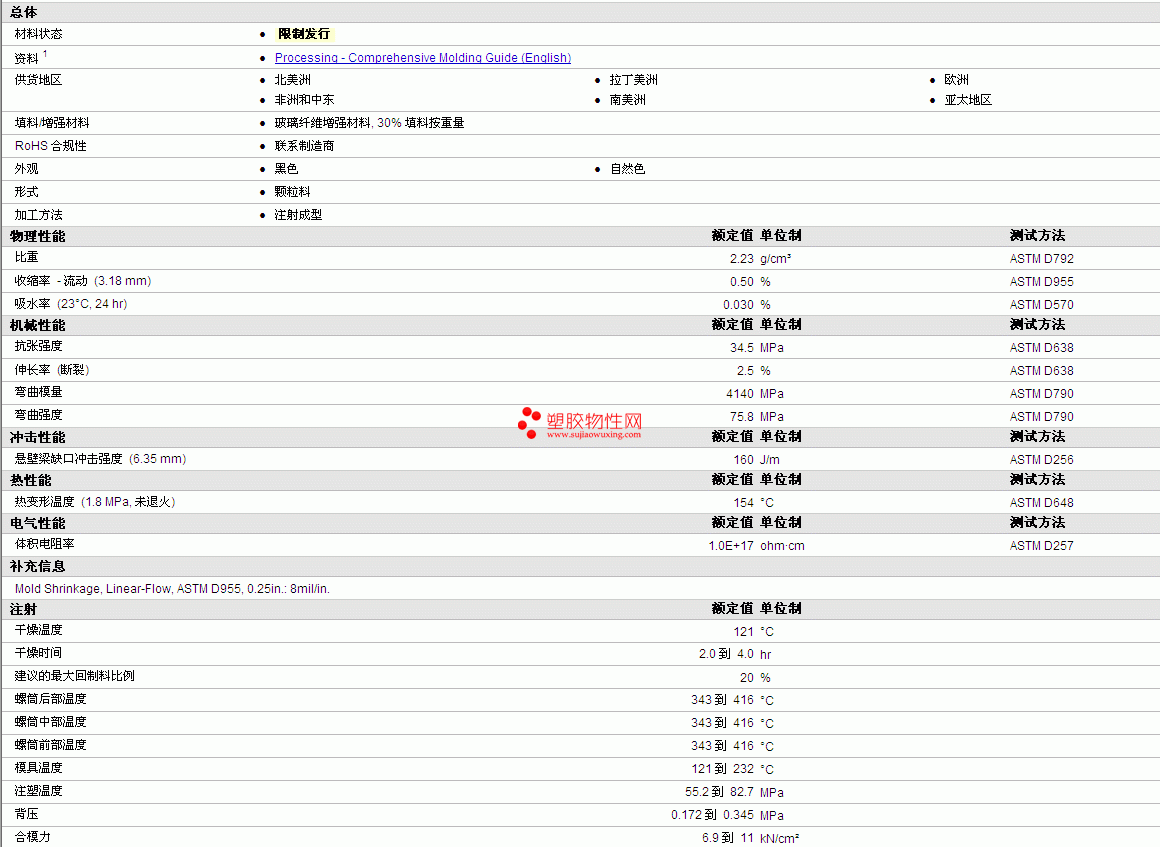 | 收缩率 - 流动 (3.18 mm) | 0.50 | % | ASTM D955 |