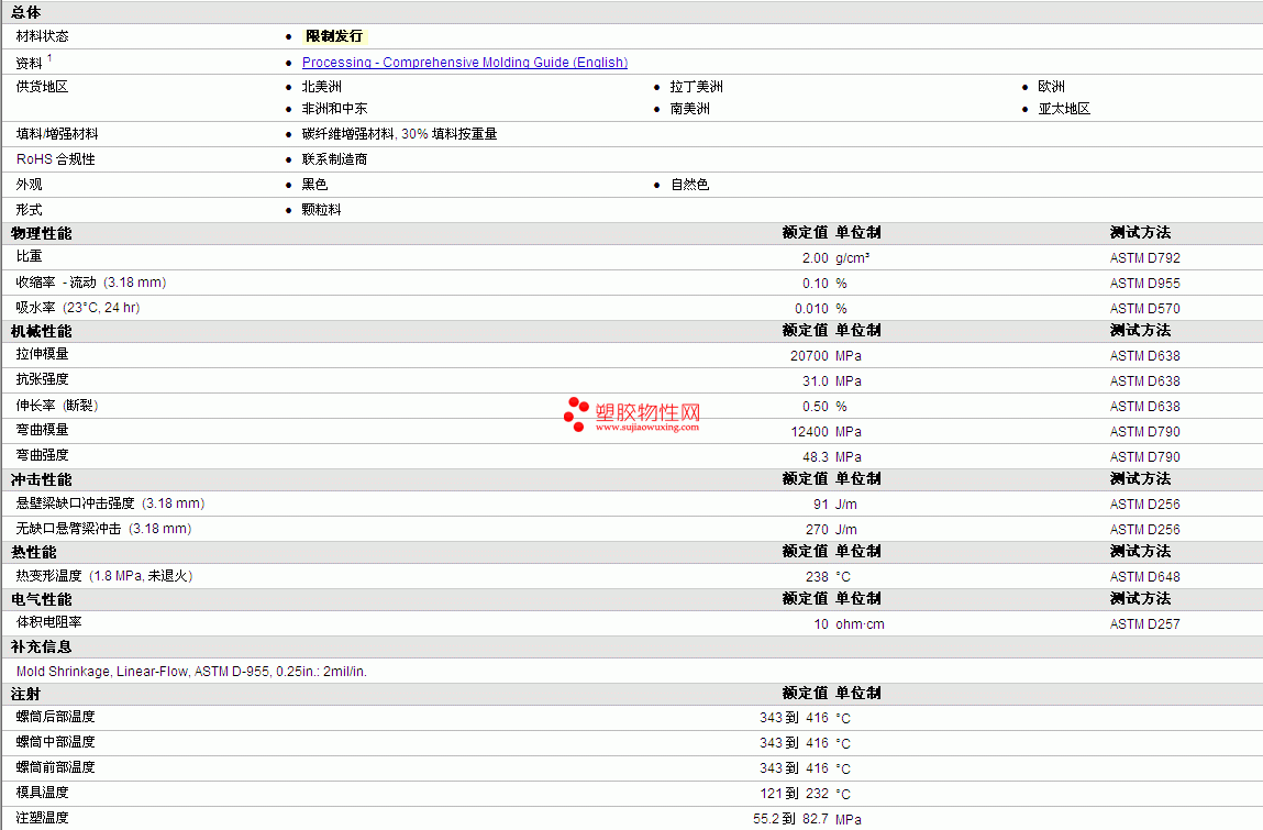 | 收缩率 - 流动 (3.18 mm) | 0.10 | % | ASTM D955 |