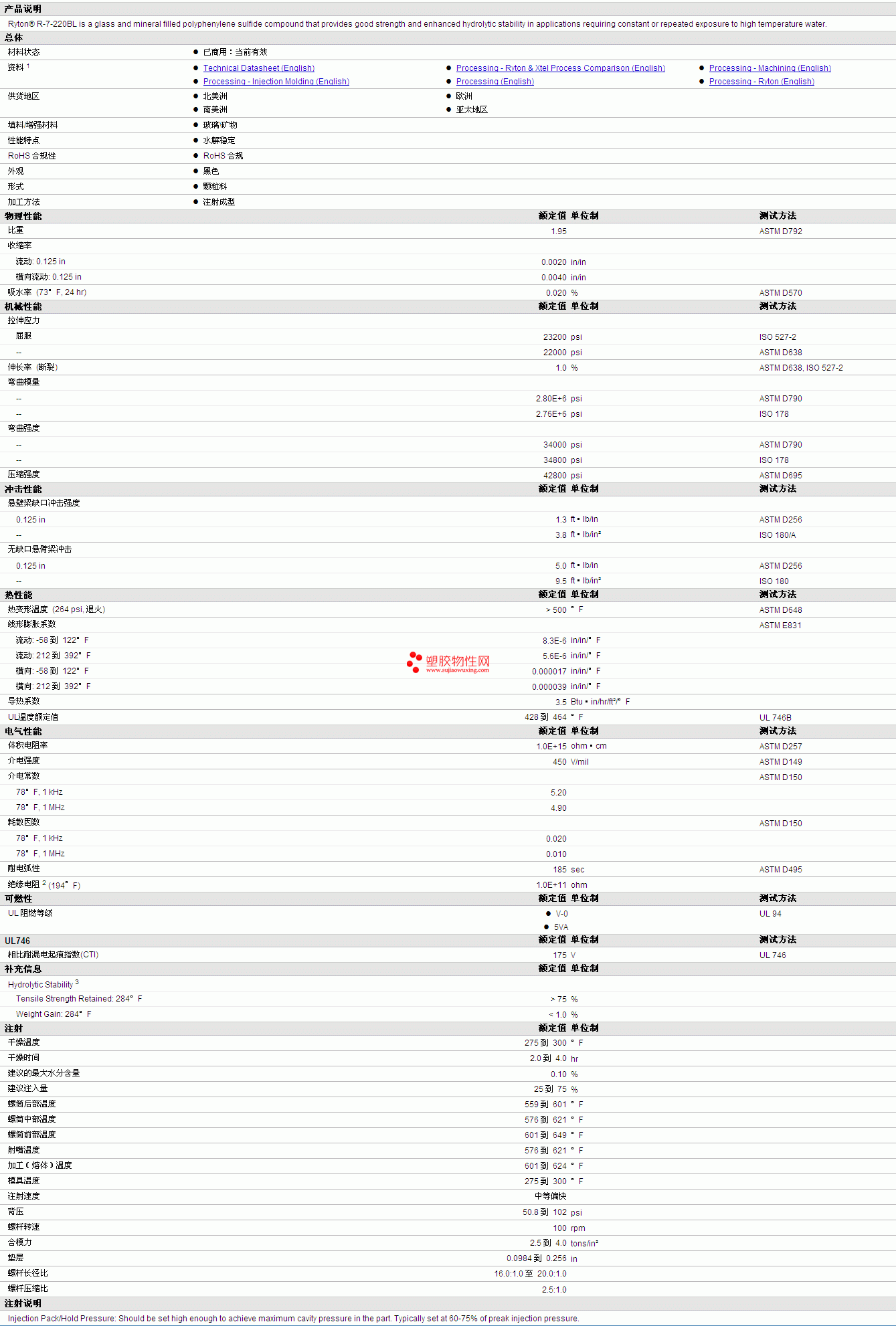 更多Ryton pps R-7-220BL,物性表报价,图片、材质证明、UL黄卡、物质安全资料表(MSDS)等,最新行情报价等可来电咨询或QQ:767320520