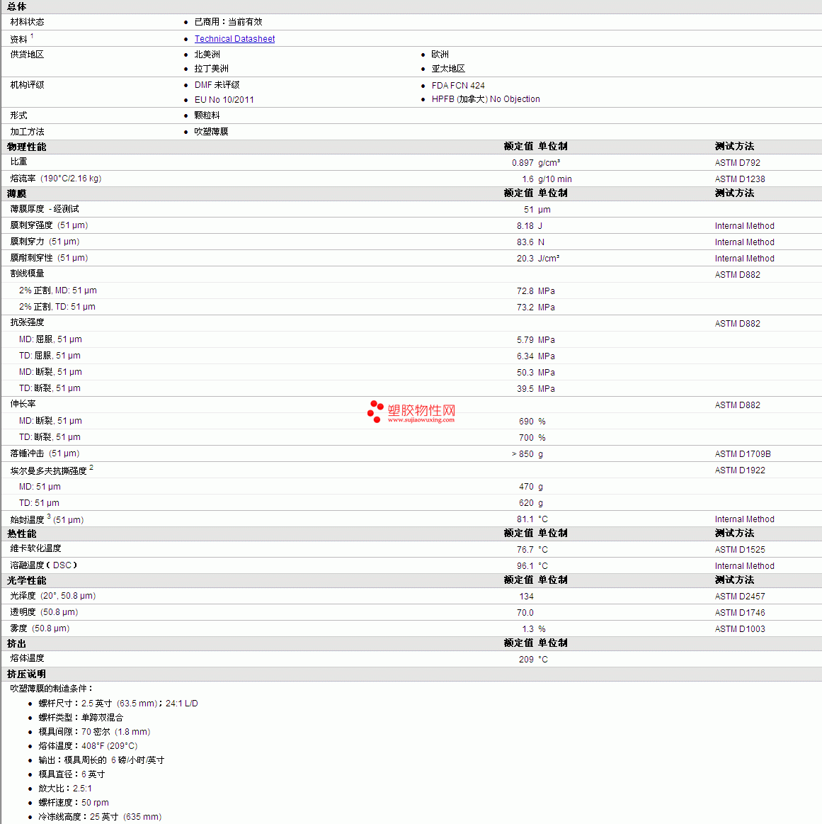 | 膜刺穿强度 (51 µm) | 8.18 | J | Internal Method |