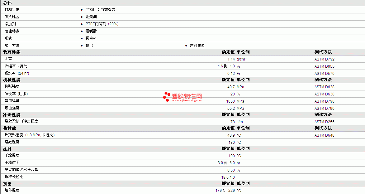 | 收缩率 - 流动 | 1.6 到 1.8 | % | ASTM D955 |