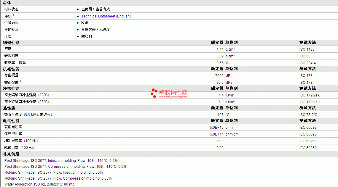 | 收缩率 - 流量 | 0.65 | % | ISO 294-4 |