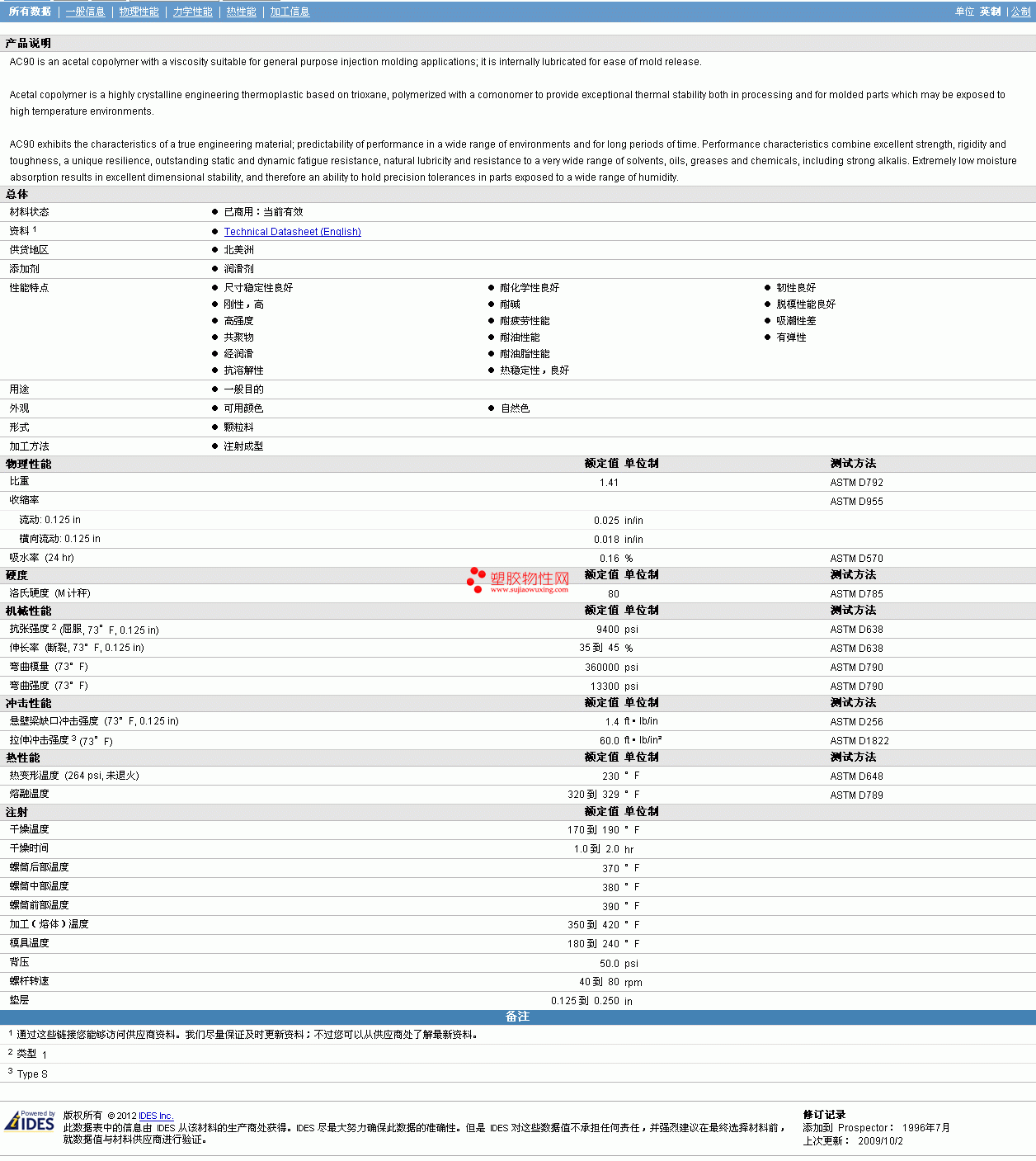 | 洛氏硬度 (M 计秤) | 80 | ASTM D785 |