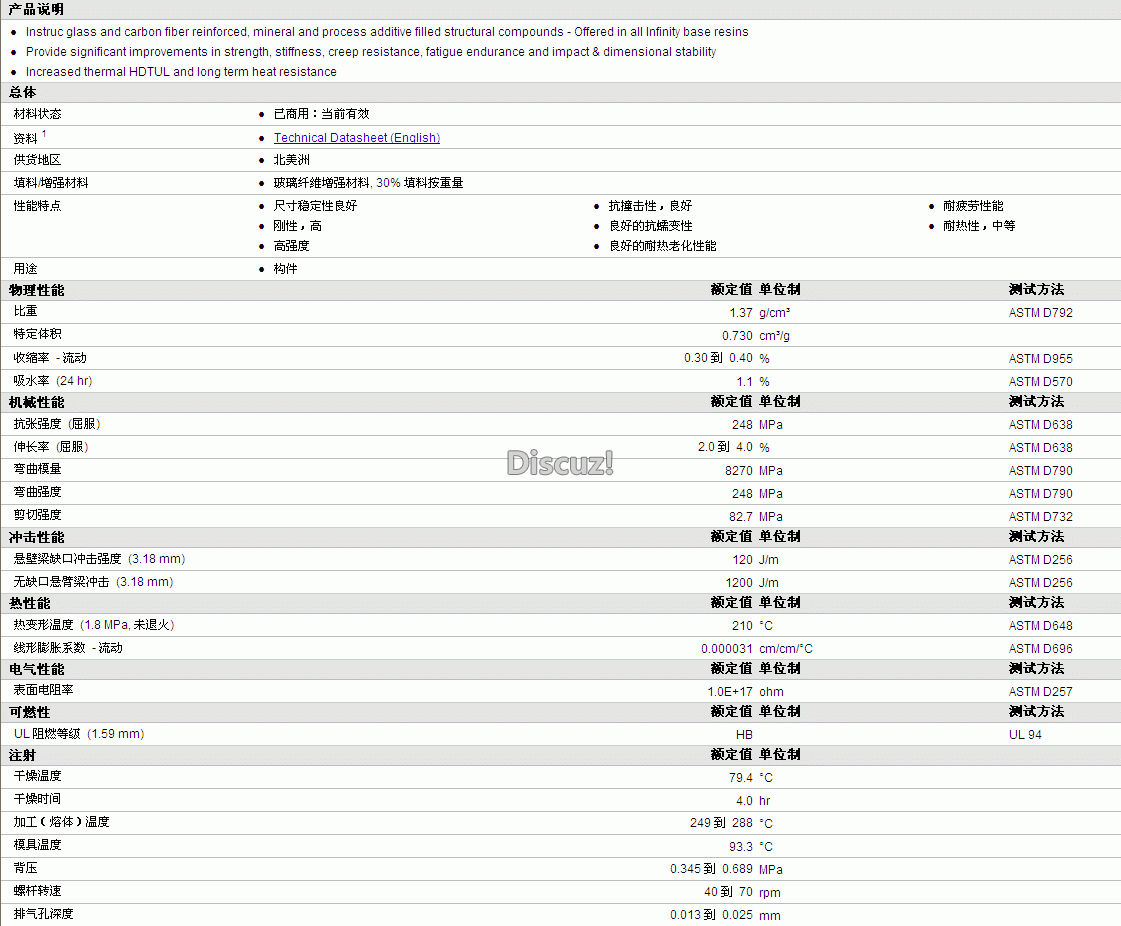 INSTRUC PA6 GF30物性表资料详情如图所示