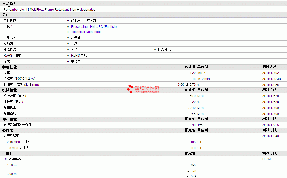 Hylex PC P1018FRVNHE 物性表见下图