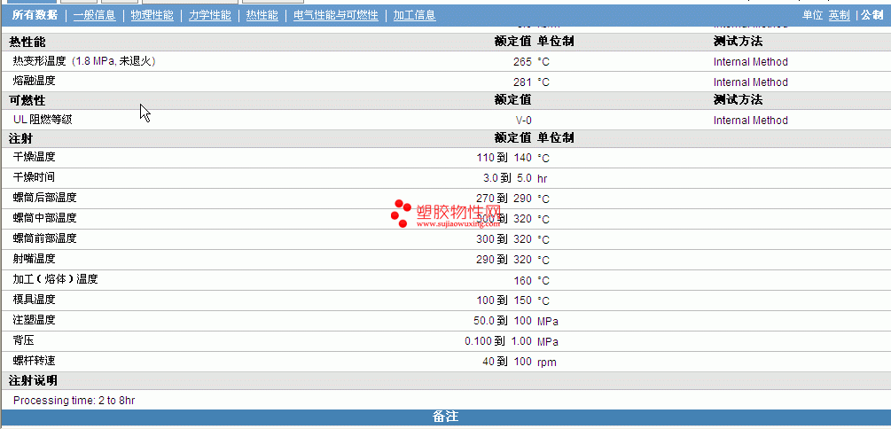 | 机械性能 | 额定值 | 单位制 | 测试方法 |
