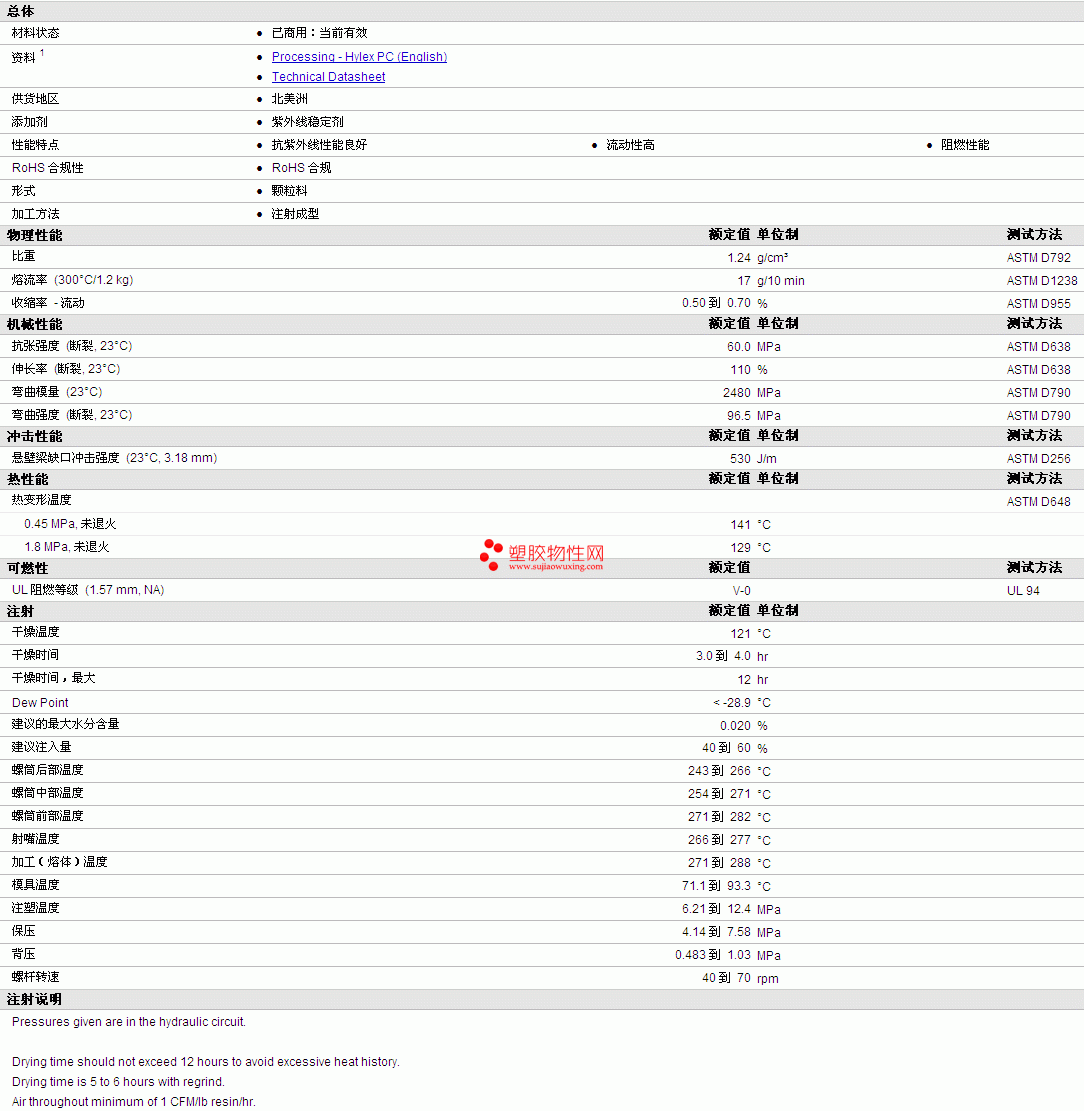 如需Hylex PC P1317FR 塑料更多详情,其他塑胶原料物性尽在塑胶物性网,致电咨询或QQ:767320520