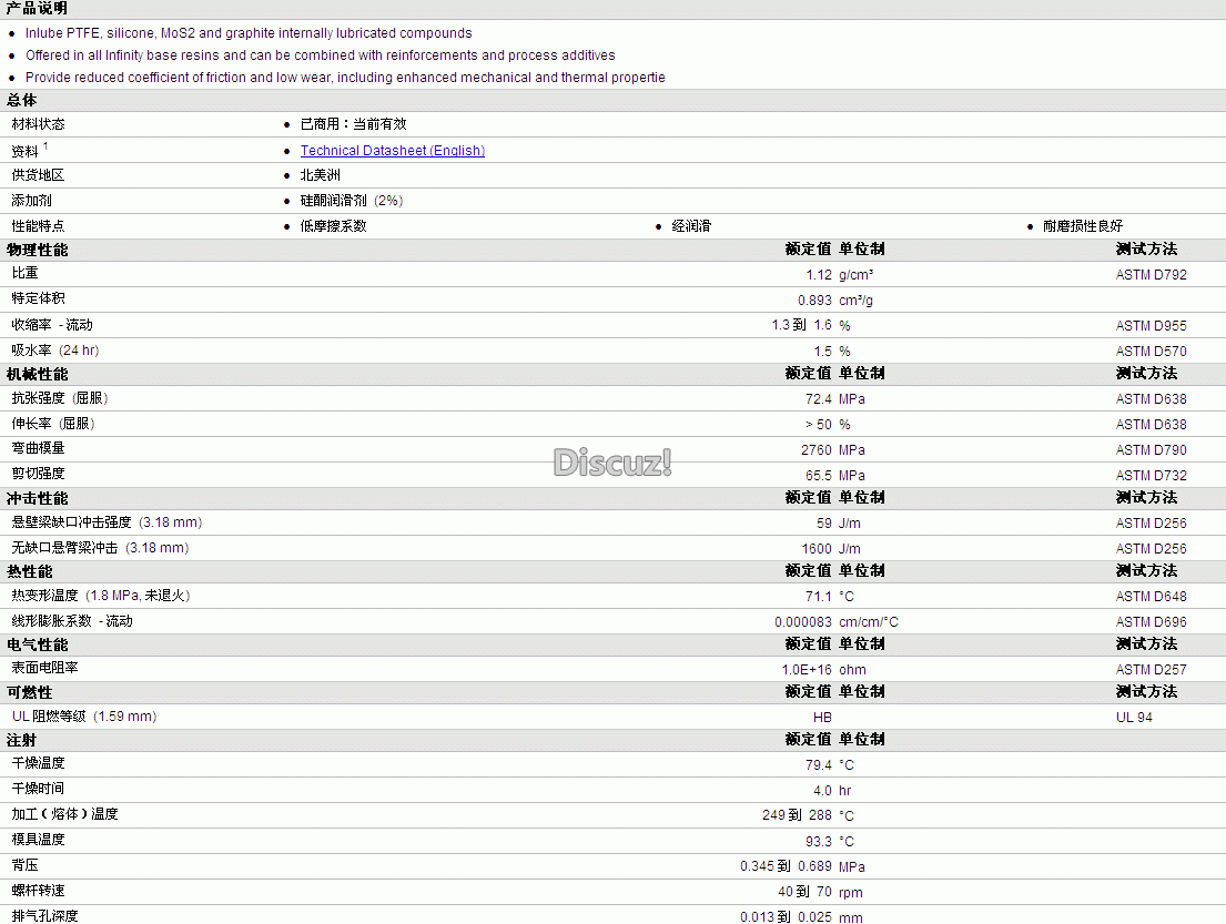 INLUBE PA6 SI2 物性表资料详情如图所示