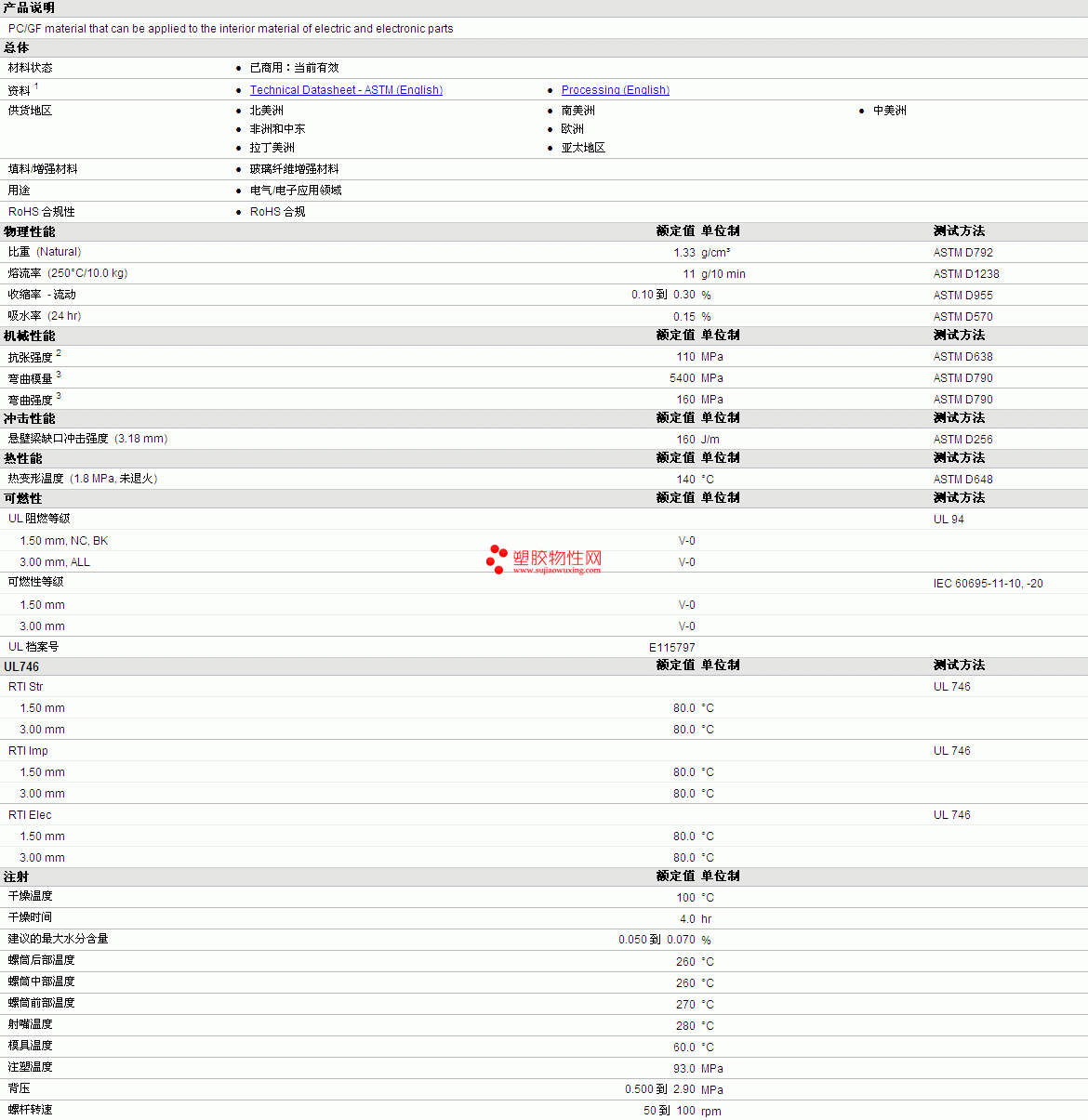 | 收缩率 - 流动 | 0.10 到 0.30 | % | ASTM D955 |