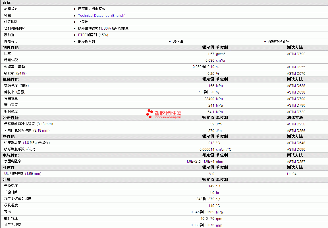| 弯曲强度 | 241 | MPa | ASTM D790 |