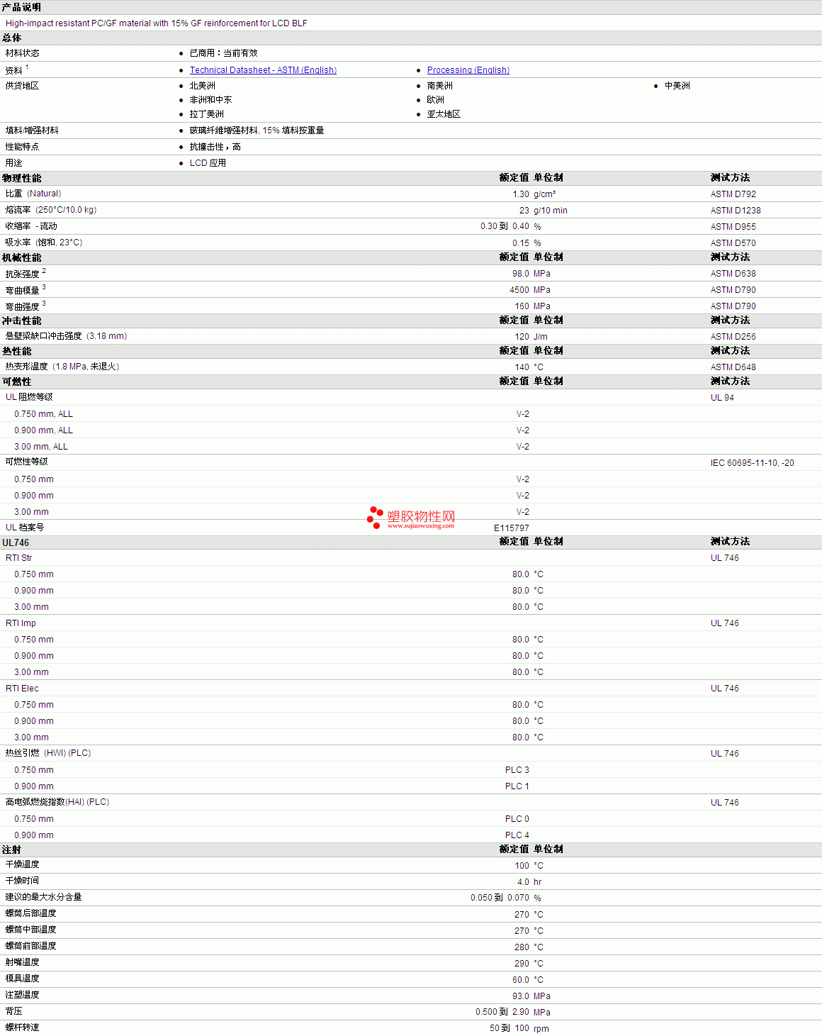 如需Infino PC LB-3150G塑料更多详情,其他塑胶原料物性尽在塑胶物性网,致电咨询或QQ:767320520