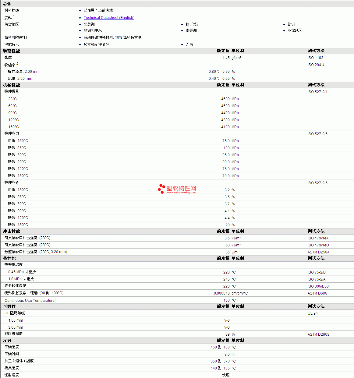 | 机械性能 | 额定值 | 单位制 | 测试方法 |