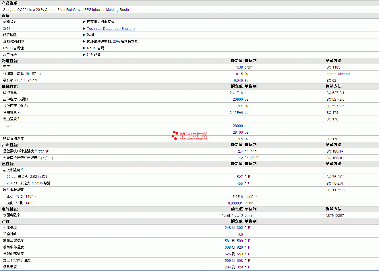 | 拉伸模量 | 2.41E+6 | psi | ISO 527-2/1 |