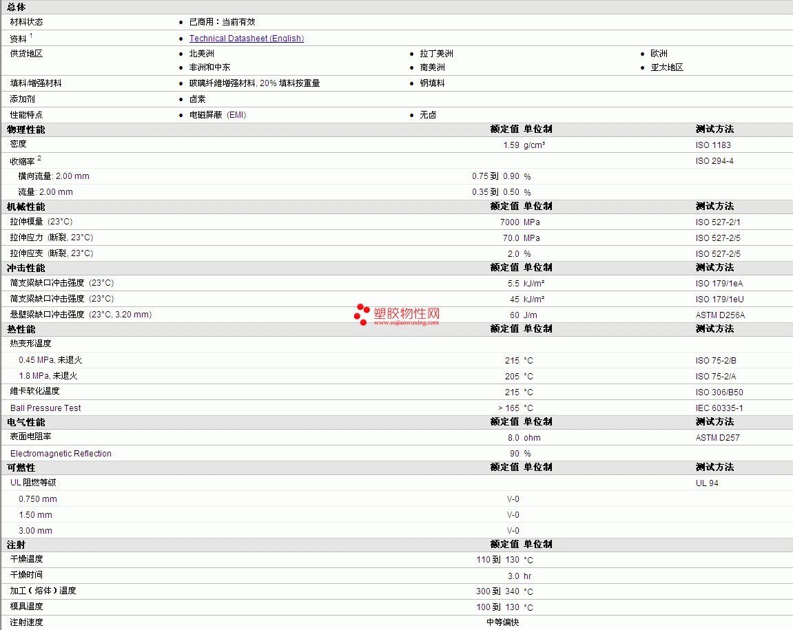| 拉伸应变 (断裂, 23°C) | 2.0 | % | ISO 527-2/5 |