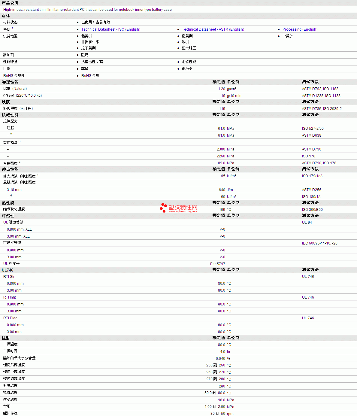 如需Infino PC UF-1017S塑料更多详情,其他塑胶原料物性尽在塑胶物性网,致电咨询或QQ:767320520