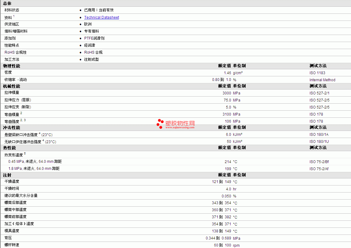 | 拉伸模量 | 3000 | MPa | ISO 527-2/1 |