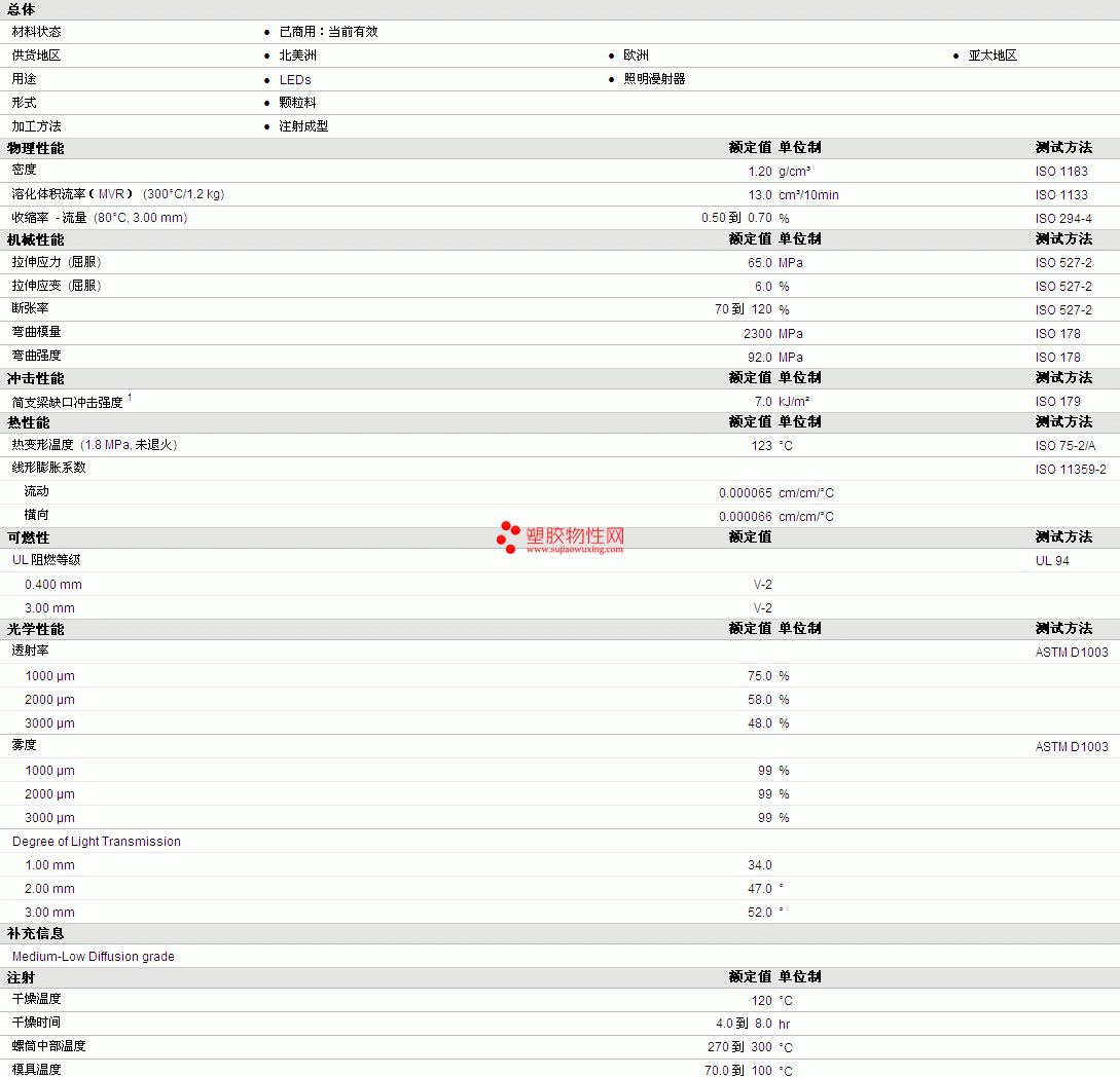 | 溶化体积流率(MVR) (300°C/1.2 kg) | 13.0 | cm³/10min | ISO 1133 |