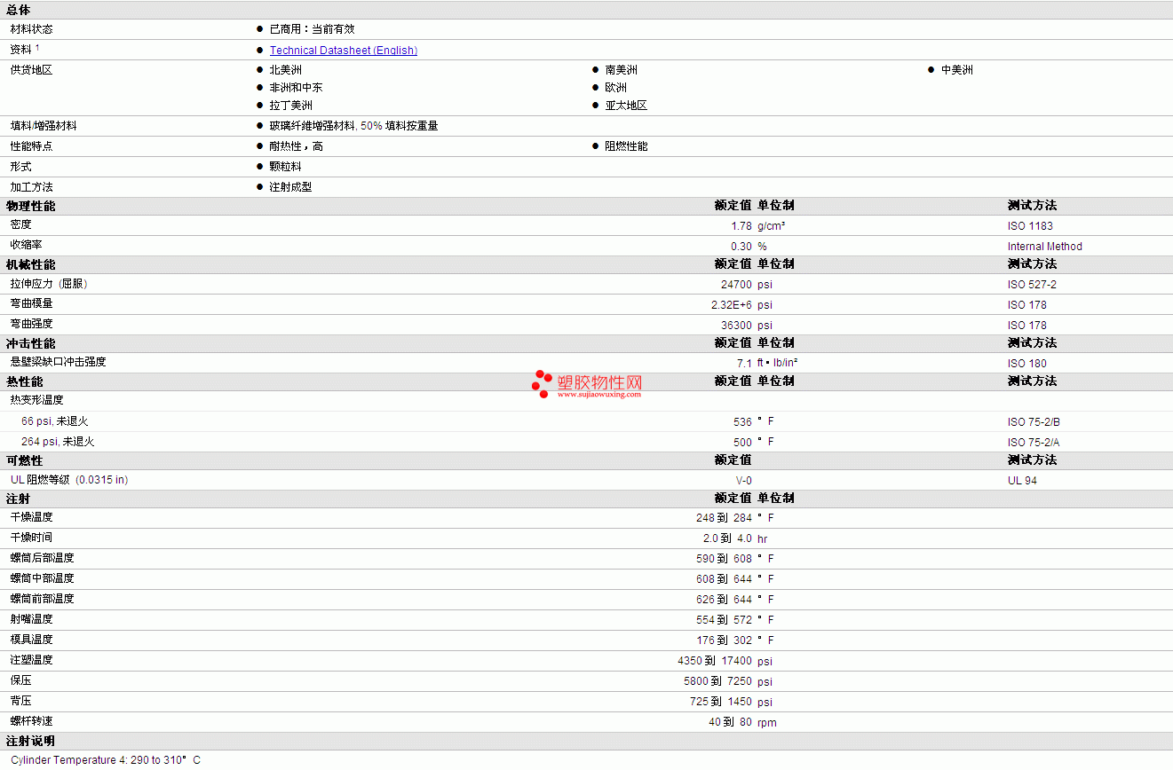 | 弯曲强度 | 36300 | psi | ISO 178 |