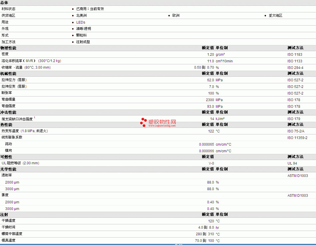 | 溶化体积流率(MVR) (300°C/1.2 kg) | 11.0 | cm³/10min | ISO 1133 |