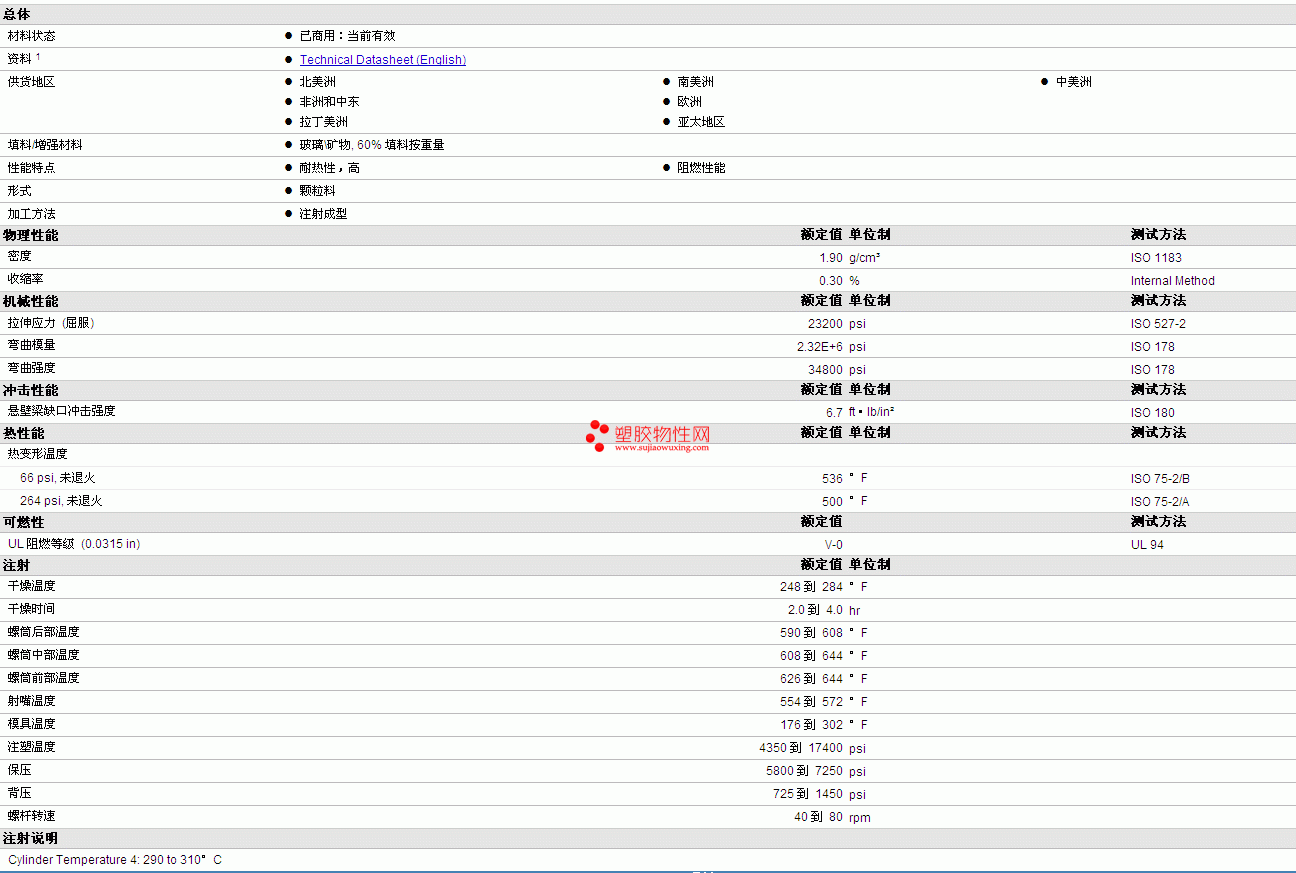 | 弯曲模量 | 2.32E+6 | psi | ISO 178 |