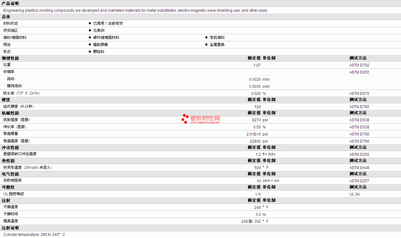| 抗张强度 (屈服) | 8270 | psi | ASTM D638 |