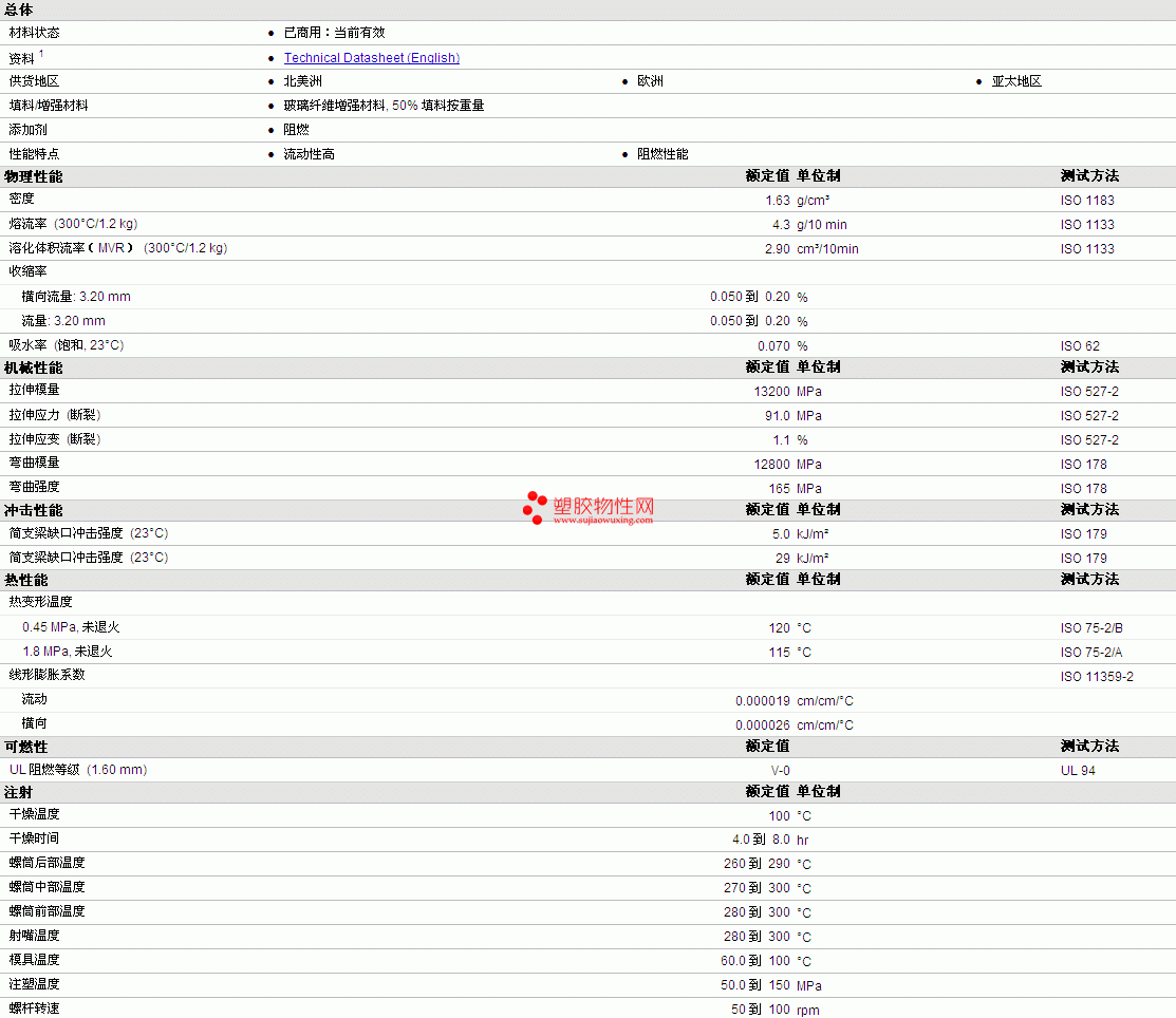 Iupilon PC GPN2050DF物性表详细情况如图