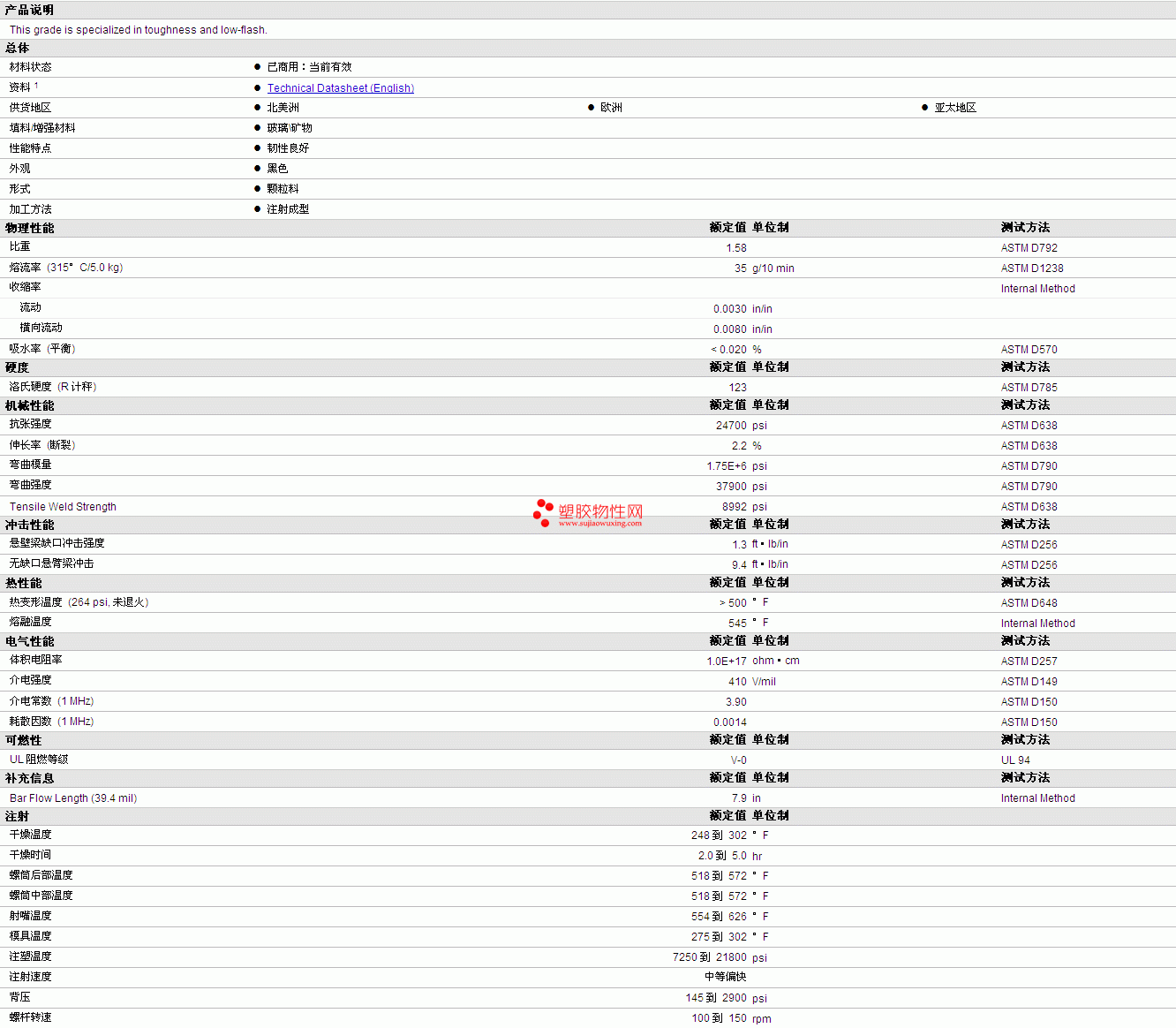 | 熔流率 (315°C/5.0 kg) | 35 | g/10 min | ASTM D1238 |