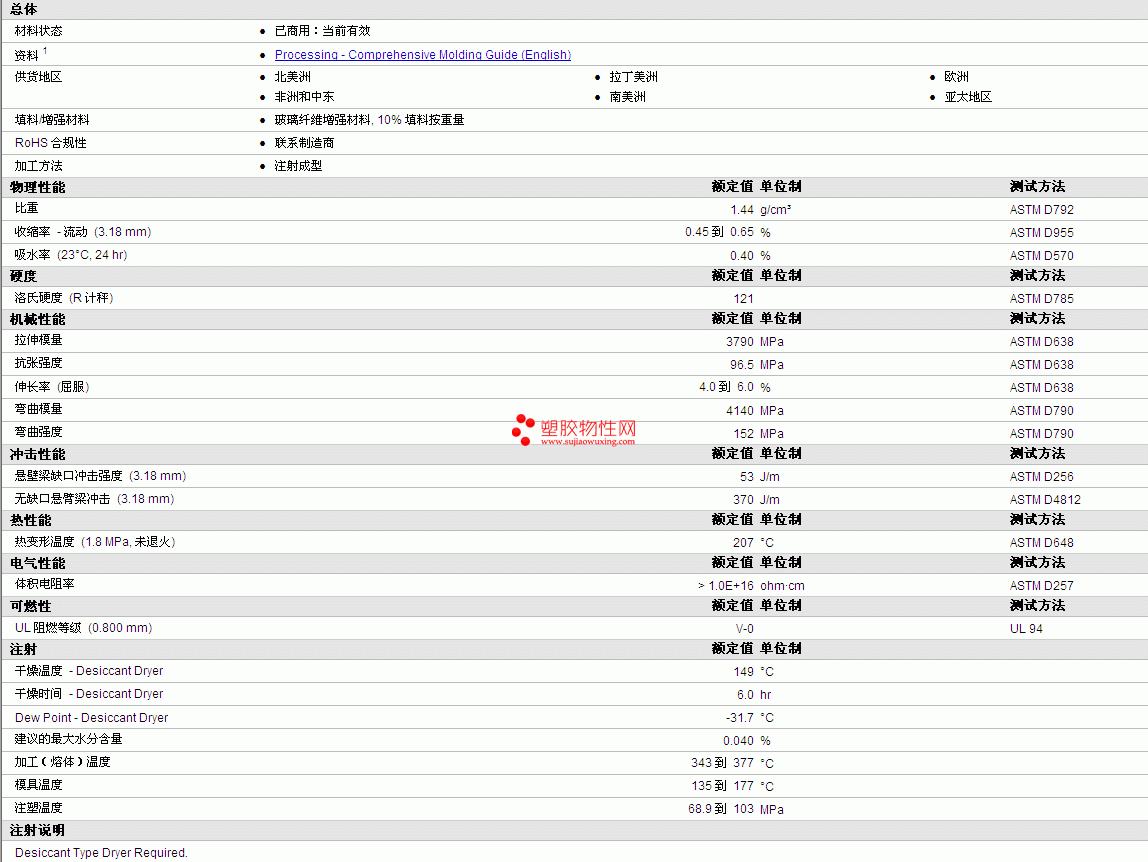 | 收缩率 - 流动 (3.18 mm) | 0.45 到 0.65 | % | ASTM D955 |