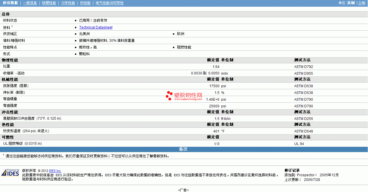 其他工程塑料物性表