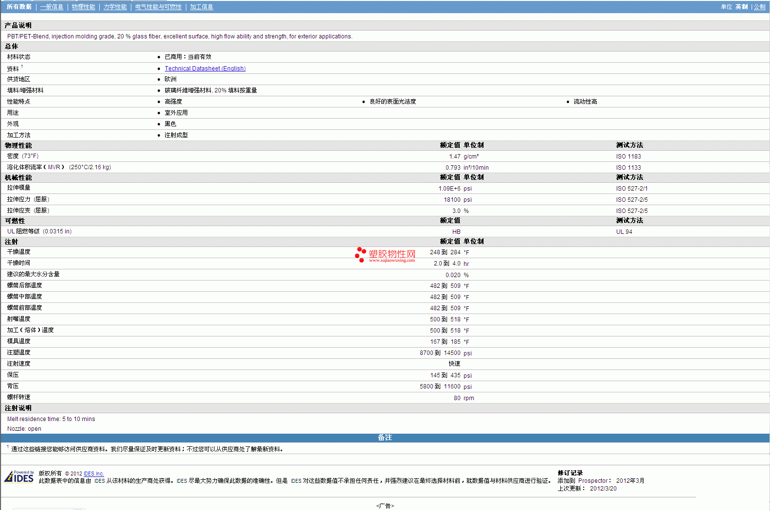 CompaDur PBT/PET 125 GF 20 black (044) 物性表