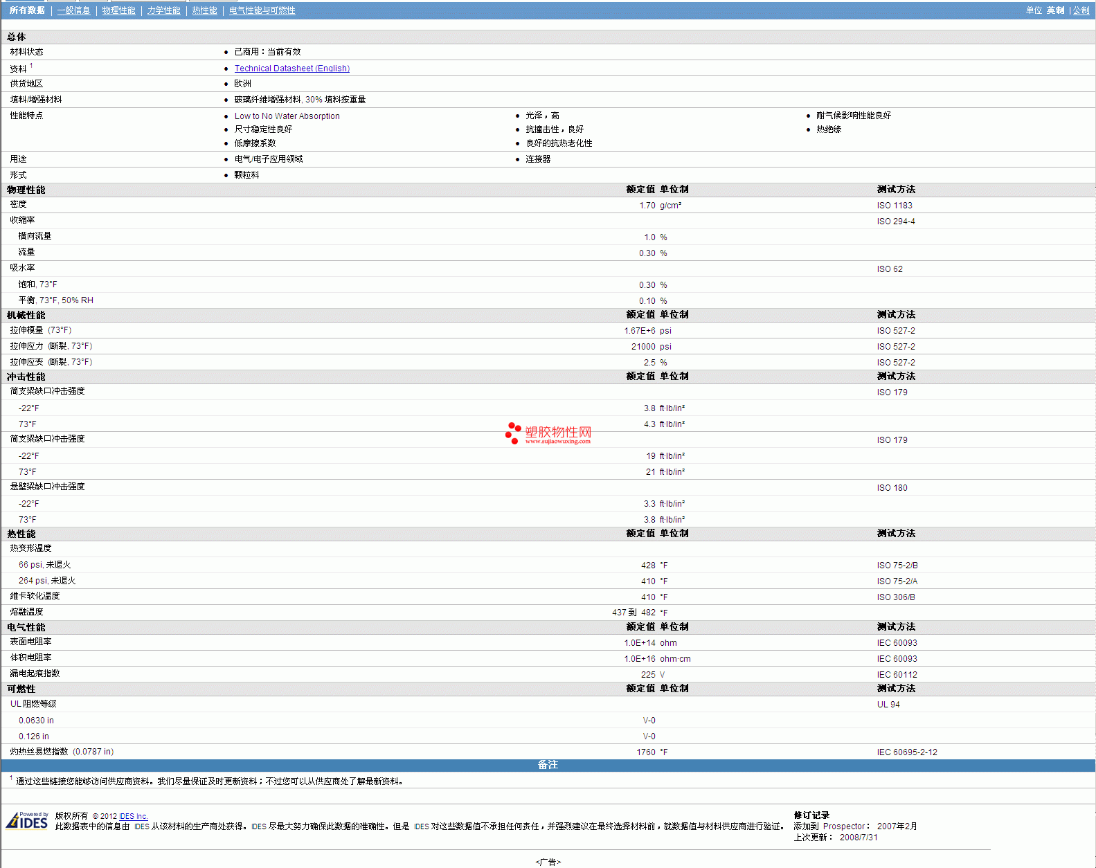 Melos PBT PB70 GR30 NL XA 21 物性表