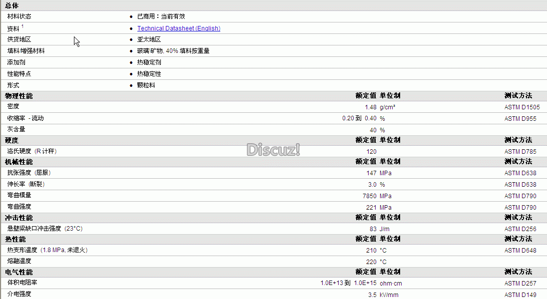 Hyundai EP PA6 LS380物性表详情如图所示