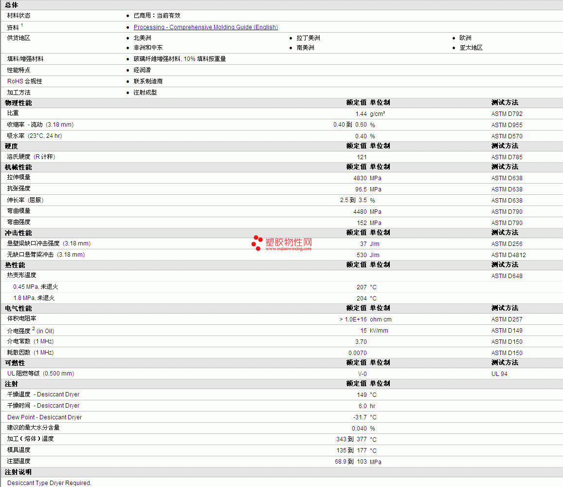 | 收缩率 - 流动 (3.18 mm) | 0.40 到 0.60 | % | ASTM D955 |