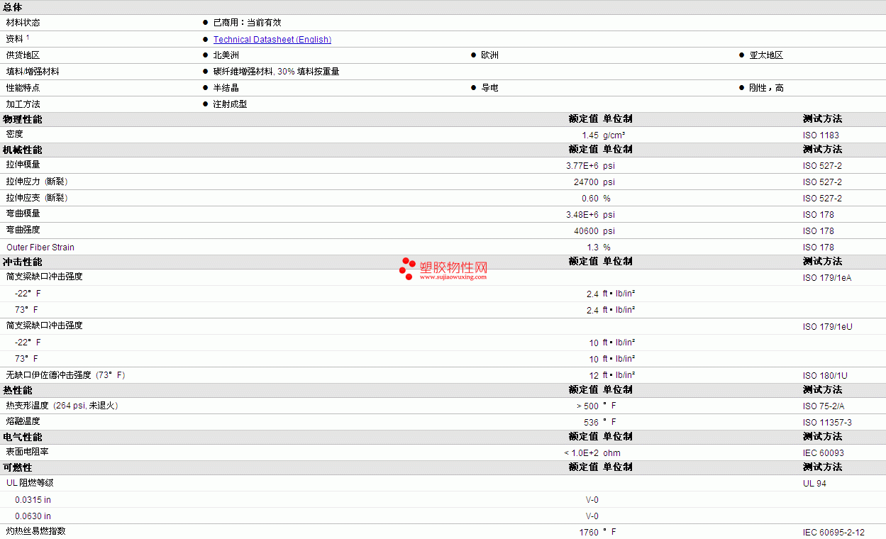 | 拉伸模量 | 3.77E+6 | psi | ISO 527-2 |