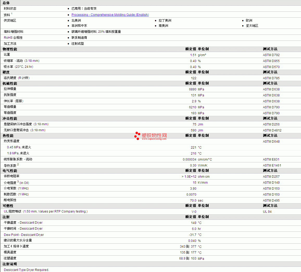 | 机械性能 | 额定值 | 单位制 | 测试方法 |