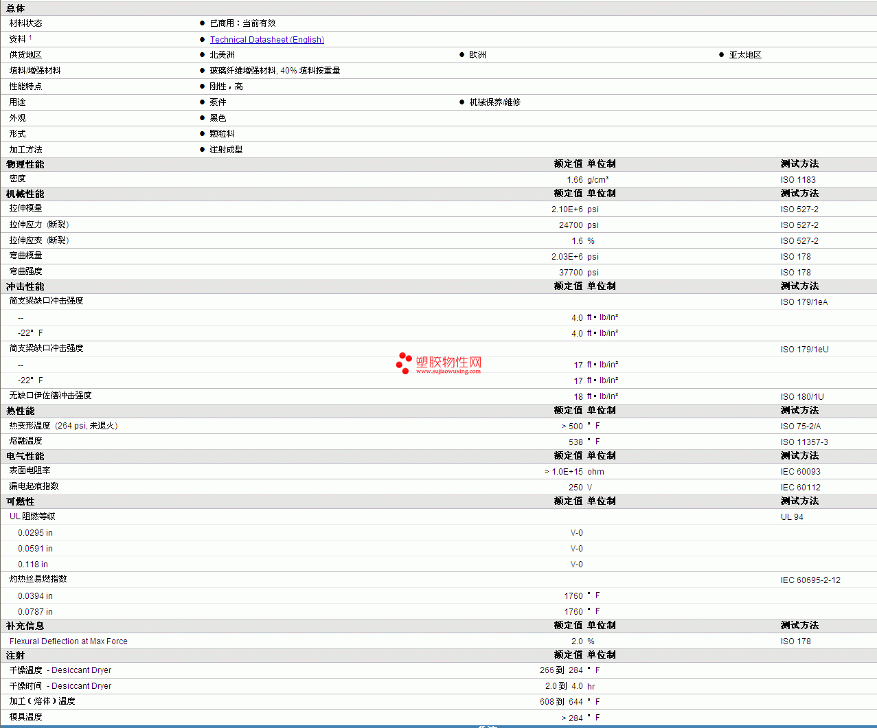 | 弯曲强度 | 37700 | psi | ISO 178 |