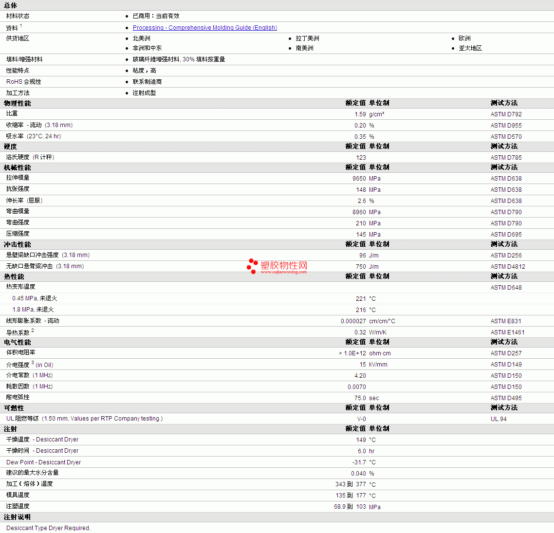 | 拉伸模量 | 9650 | MPa | ASTM D638 |