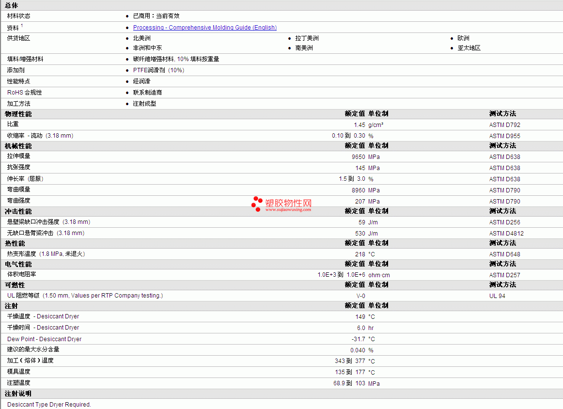 | 抗张强度 | 145 | MPa | ASTM D638 |