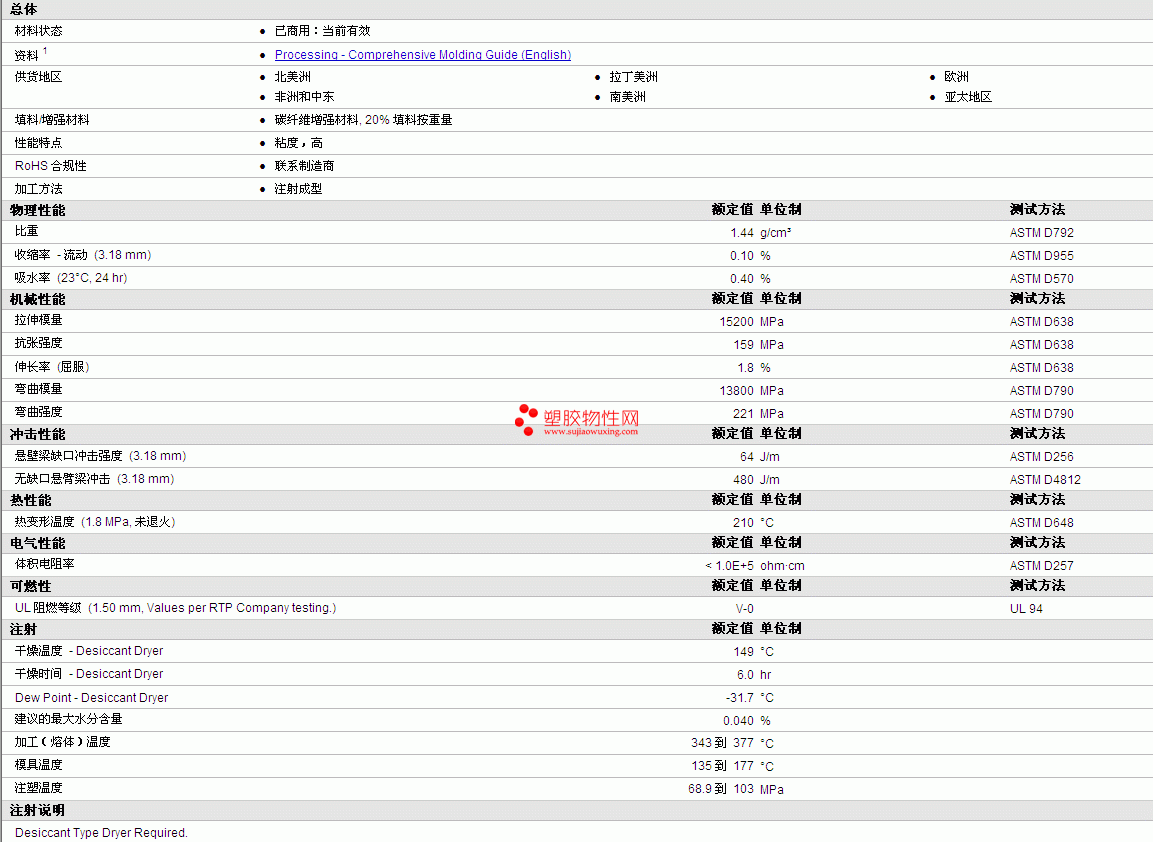 | 抗张强度 | 159 | MPa | ASTM D638 |