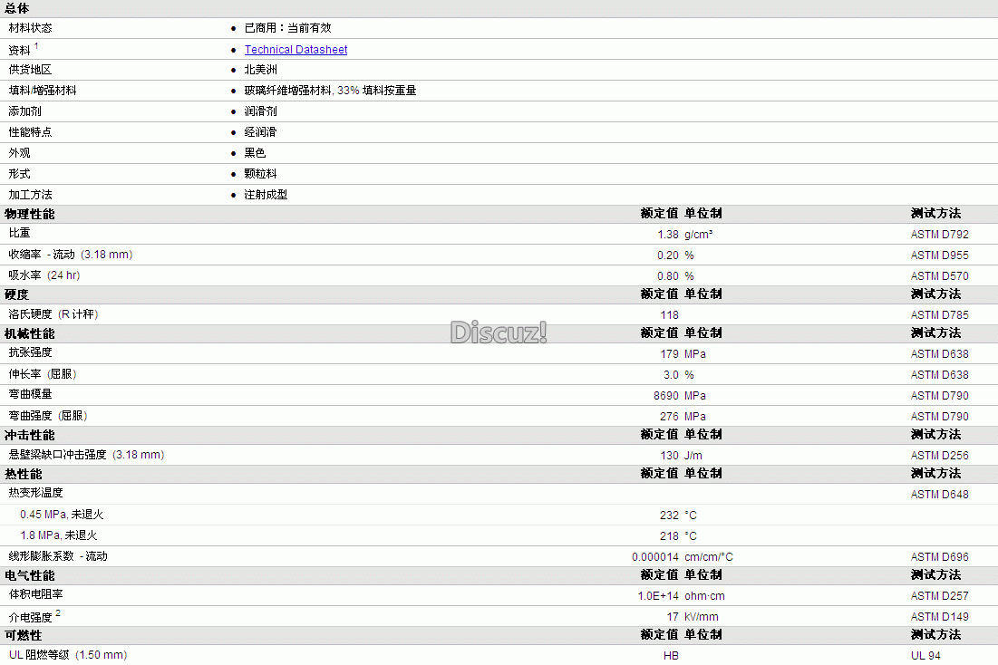 HiFill PA6/6,6 GF33 HS L BK物性表详情如图