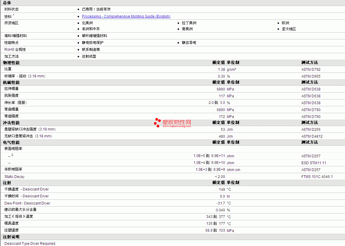 | 弯曲模量 | 6890 | MPa | ASTM D790 |