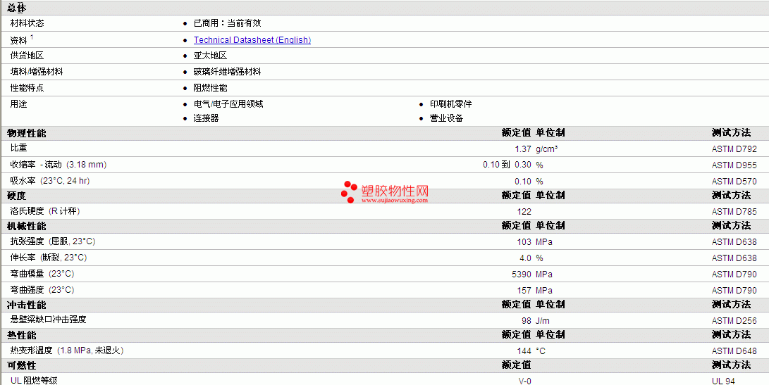 | 机械性能 | 额定值 | 单位制 | 测试方法 |