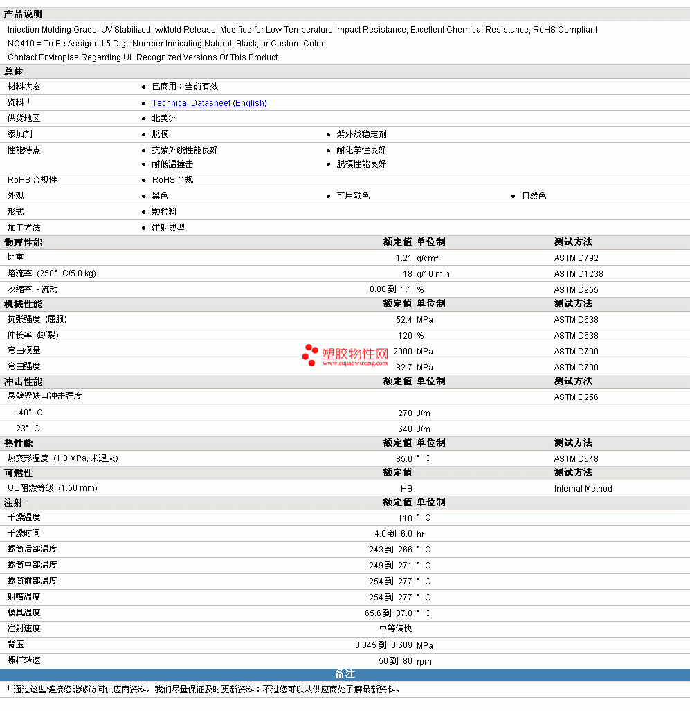 ENVIRON PC/PBT ENV39-NC410物性表详情见附