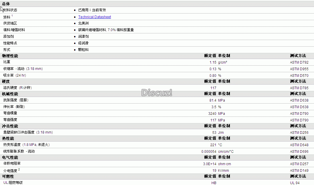 HiFill PA6/6 GF7 L物性表资料详情如图