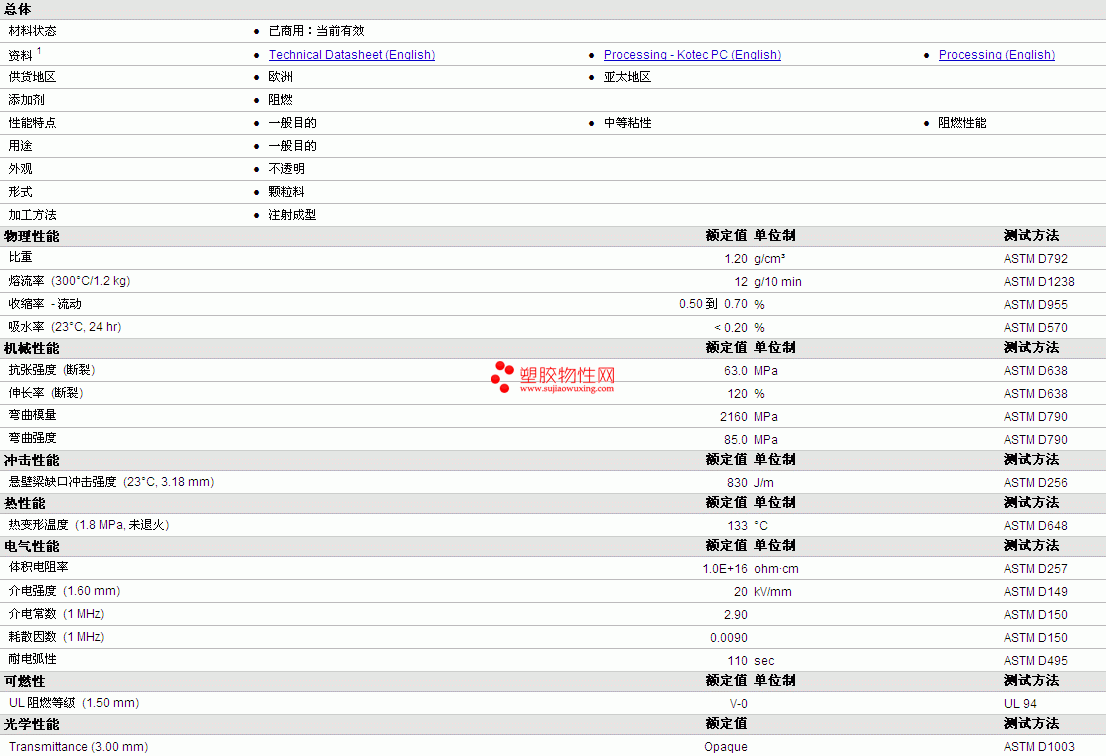 Kotex PC KFN-30T12塑料更多详情,其他塑胶原料物性POM 100P、HIPS 475、LCP E130I可来电咨询或QQ:767320520
